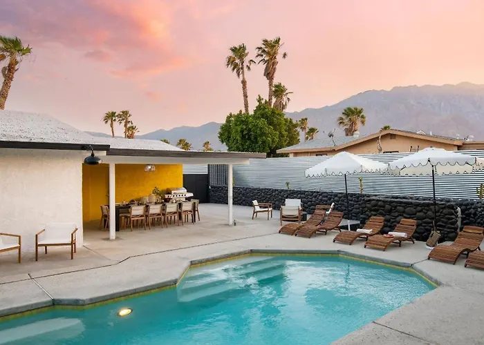 Located 3.6 km from the Chino Canyon, the 0-bedroom Yellowjacket By Avantstay Entertainer'S Yard 10Min To Downtown Palm Springs villa boasts an outdoor swimming pool with a Jacuzzi. Featuring a patio, the holiday home is situated about 10 minutes' drive from Palm Springs Convention Center.